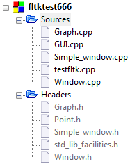 Install FLTK on your machine. Instructions for C::B. Try adding all these to .cbp and then set these build options? Sources and headers. |