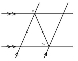 ANS: Since ΔABC is isosceles,  = 58°, and since  ,