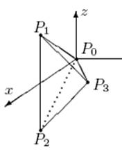 Consider a tetrahedron with vertices at P0 = (0, 0, 0), P1 = (1, 0, 1) , P2 = (1, 0, 1) ,