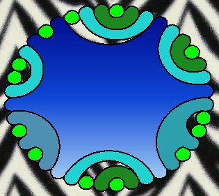 of the 6-glob (formed of 6 blobs) with syntactical representation 1((1/1/1)) is shown at left below. More bigger by far is 1(((((1))1/1/(11)/(1/1)/(1(1))/(1/1)))), the